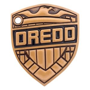 “Judge Dredd, 2000 AD’s Lawman of the Future, is feared by friends and foes alike! Bring law to your home with this replica Dredd badge, measuring 90 x 74mm and plated in antique gold. Each badge is individually numbered to the reverse and also includes a belt clip. Limited to 5,000, it comes supplied with a display stand in its presentation box.