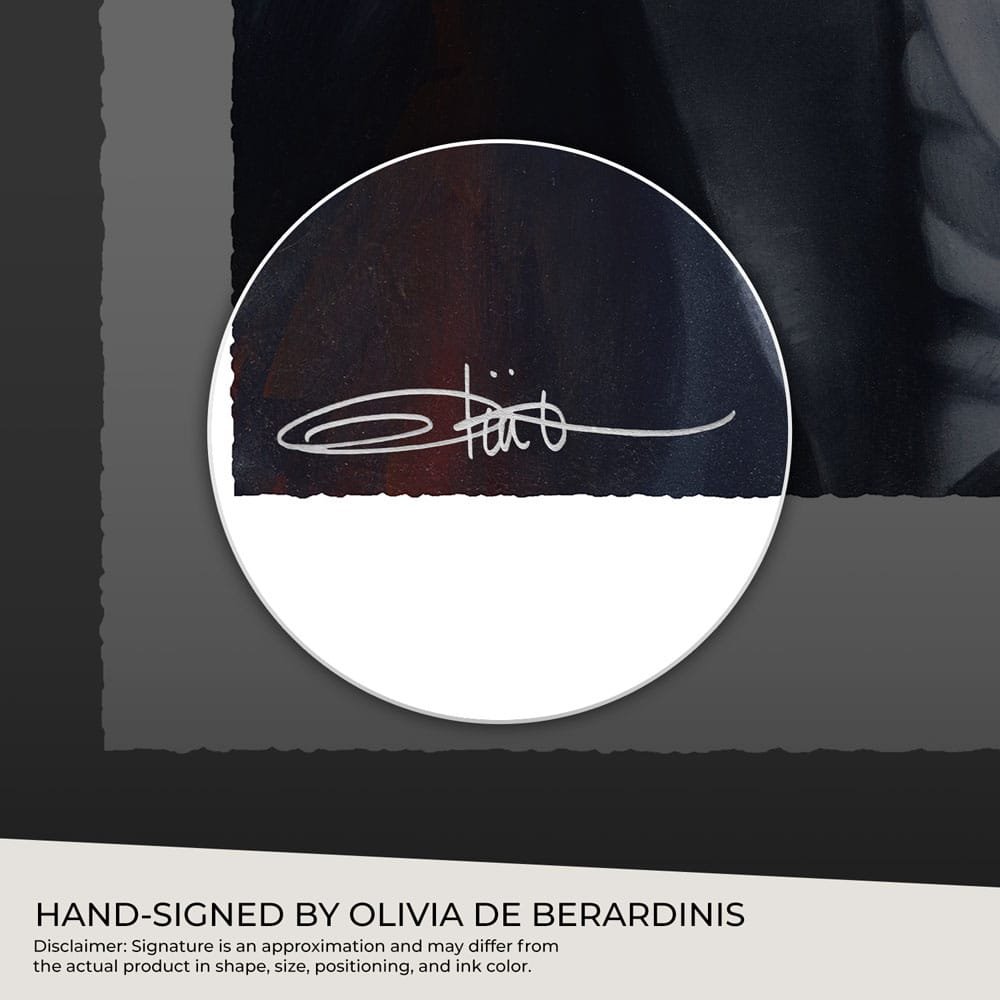 Inspired by Dracula (1931), this giclée print features hand-torn deckled edges and is offered unframed or in a custom framed presentation with a double mat design. Each Count Dracula Fine Art Print is hand-signed by Olivia herself and includes both Olivia’s embossed Seal of Authenticity and a signed Certificate of Authenticity as a part of the limited edition of 200 pieces. Certified archival materials ensure your horror artwork will retain the strength of the vampire for centuries to come.