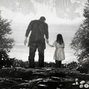 An act of tenderness will soon turn to tragedy as Frankenstein’s monster and an innocent girl approach the edge of a lake. Hand in hand with the outcast creation, young Maria shows him the goodness of humanity and the beauty of flowers. But this idyllic, monochromatic moment isn’t without its dangers – Greg Ruth cleverly infuses a looming sense of dread into aspects of the scene’s horizon. After all, for Frankenstein’s monster, death cannot be separated from life.