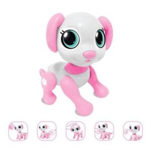 The cute Robo SMART Puppy Pinkie is an interactive dog with LED-lit eyes, various sounds and sensors, allowing SMART Puppy to respond to sounds and touch.