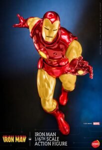 HONO STUDIO once again brings back all the nostalgia! Based on the Iron Man comic book series, this Iron Man action figure features a newly designed body with seamless silicon arms and knees, arc reactor and repulsor palms with magnetic activated LED light-up feature, together with a comic cover backdrop! This 1/6th scale figure also comes with swappable face masks and detachable countermeasure dispensers, capturing the finest details of Iron Man’s classic look at different eras.