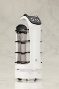 BellaBot, the latest delivery robot designed by Pudu, is endowed with superior human-robot interaction capabilities. Featuring an innovative bionic design, cute appearance, AI speech capability, multi-modal interaction, and many other new functions, BellaBot provides users with an unprecedented food delivery experience.