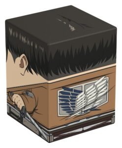 Collectible box for storing TCG decks, tabletop gaming accessories, and/or collectibles. The Levi Ackermann Squaroe from the Attack on Titan edition holds up to 100 cards in double protective sleeves if used as a deck box. Squaroes are made from 78% renewable resources and fit perfectly into the separately available Collectors Case.