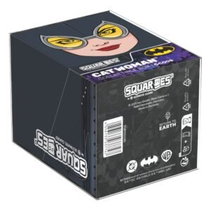 Collectible box for storing TCG decks, tabletop gaming accessories, and/or collectibles. The Cat Woman Squaroe from the Batman: Gotham City edition holds up to 100 cards in double protective sleeves if used as a deck box. Squaroes are made from 78% renewable resources and fit perfectly into the separately available Collectors Case.