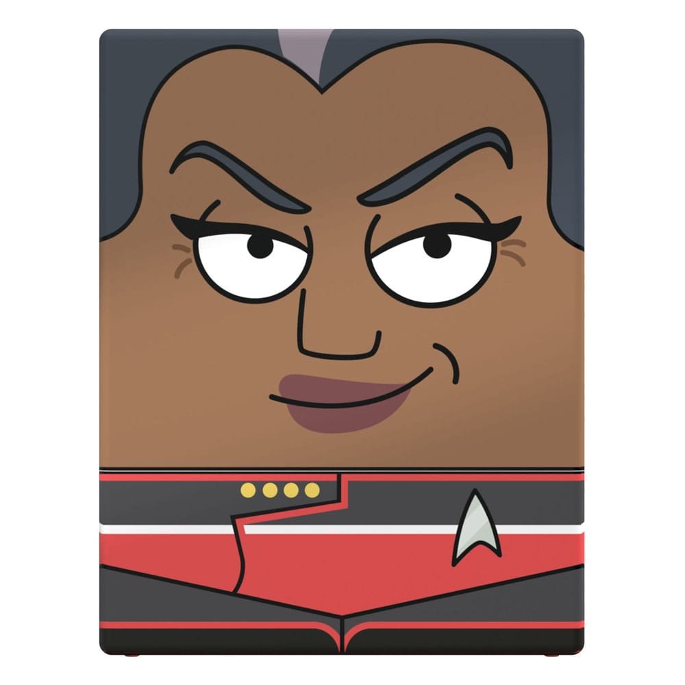 Collectible box for storing TCG decks, tabletop gaming accessories, and/or collectibles. The Carol Freeman Squaroe from the Star Trek: Lower Decks™ edition holds up to 100 cards in double protective sleeves if used as a deck box. Squaroes are made from 78% renewable resources and fit perfectly into the separately available Collectors Case.