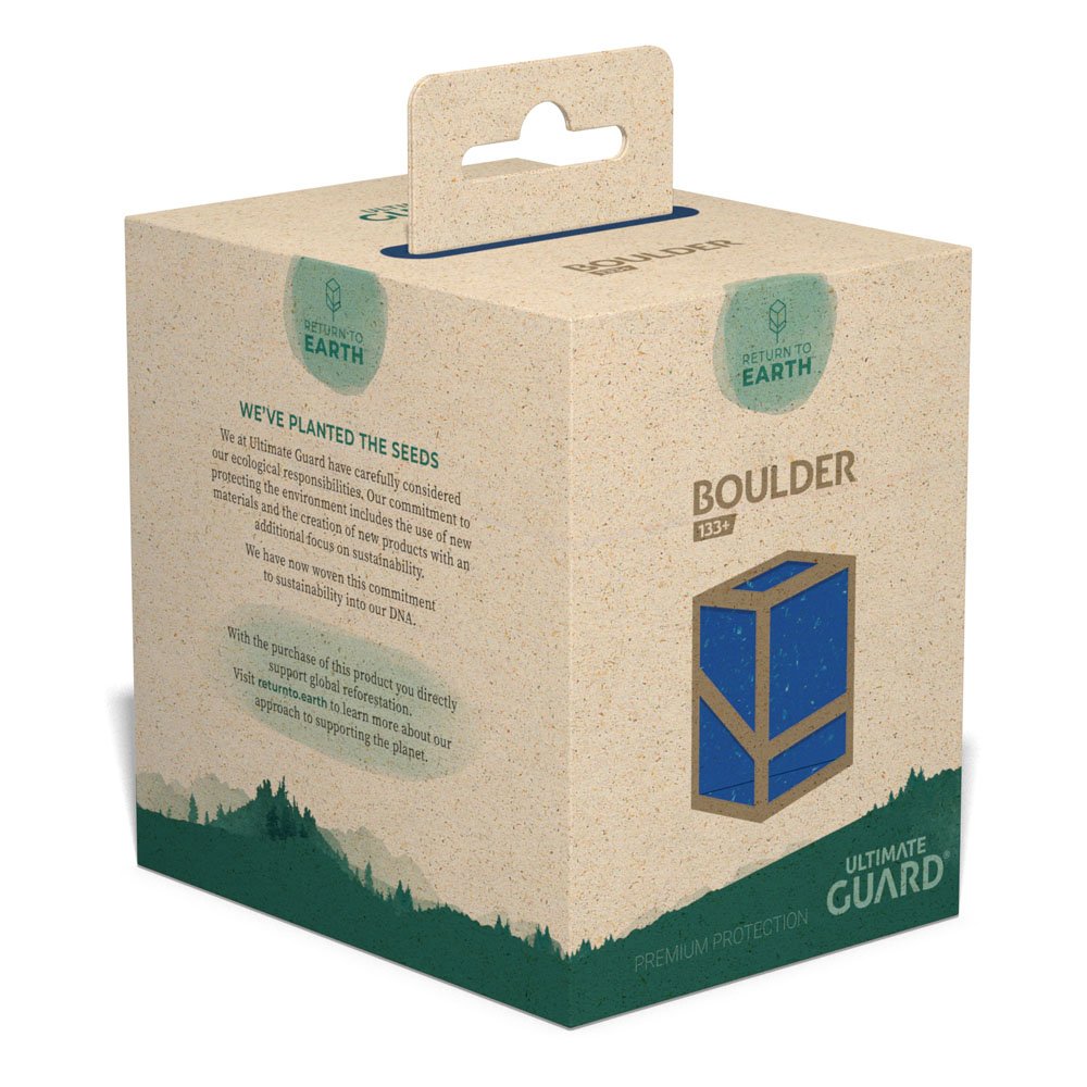 Ultimate Guard is very proud to present the bigger version of the world’s first sustainable TCG deck box: the Ultimate Guard RTE Boulder 133+. With the Return to Earth line, you don’t need to compromise between your hobby and your ambitions to make more sustainable choices. Now you can have it all – plus more space! Use this box to securely store double sleeved decks of up to 133 cards (optimized for Ultimate Guard sleeves). Go big or go home but be mindful of mother earth in the process.