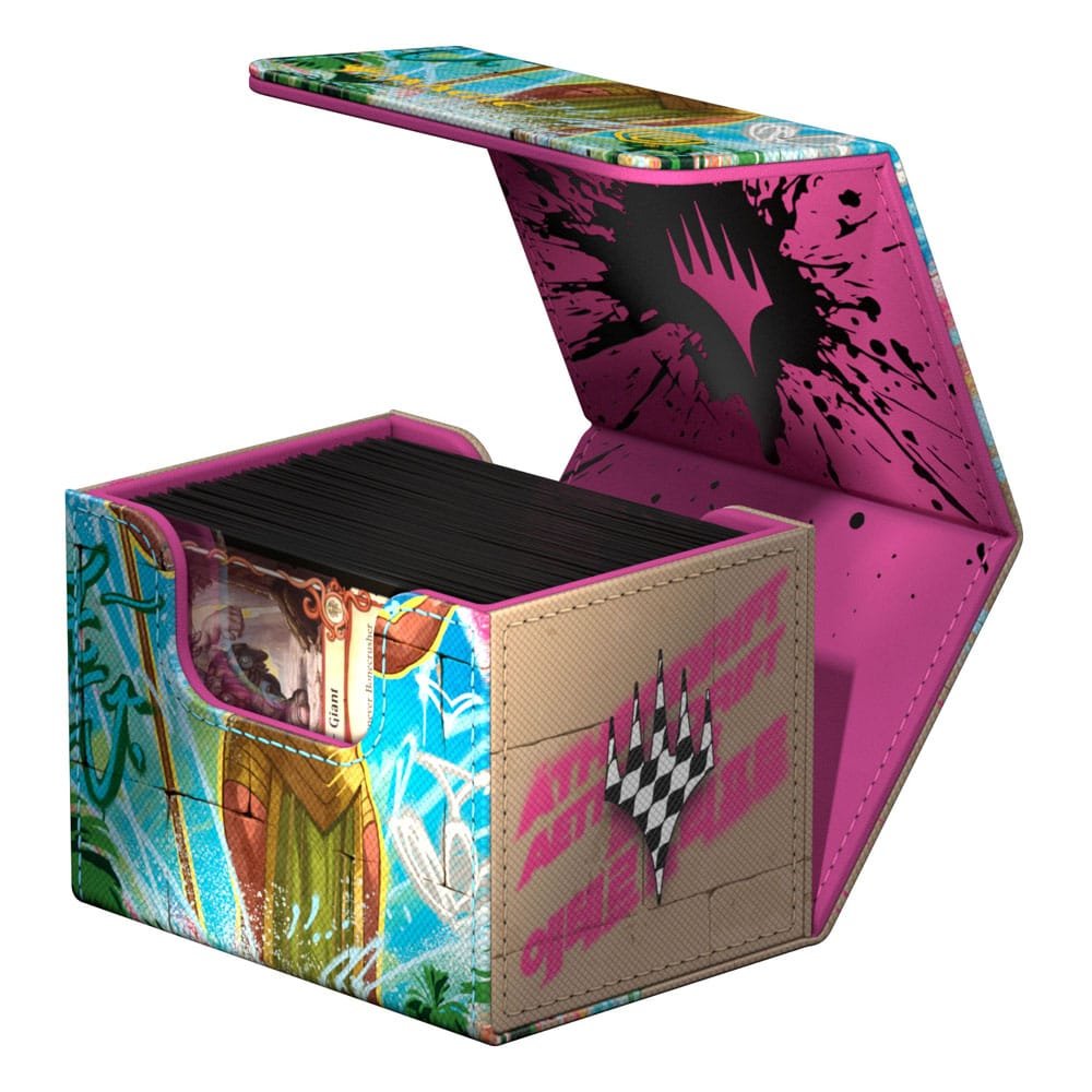 The Sidewinder 100+, made of durable Xenoskin material, holds up to 100 (double-sleeved) or 120 (single-sleeved) cards and is the perfect deck box for Commander/EDH decks. Printed in full color with officially licensed artworks from Magic: The Gathering’s Aetherdrift, Ultimate Guard’s Sidewinder deck boxes with their strong magnetic closure and quality microfiber inner lining are a safe and reliable storage place for MTG decks and individual trading cards.
