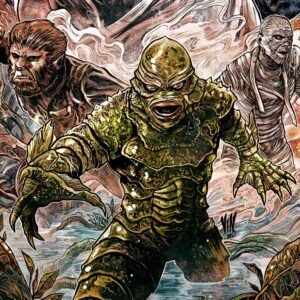 The silver scream has never been so vibrant. Eight’s an evil crowd in this cinematic roll call, resplendent with masks and makeup that shaped the film industry. Frankenstein, The Phantom of the Opera, Invisible Man, Count Dracula, The Bride of Frankenstein, Wolfman, The Mummy, and The Creature from the Black Lagoon swarm around beloved scenery from each terrifying tale. They’re … ALIVE – and their legacies live forever!