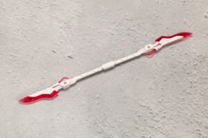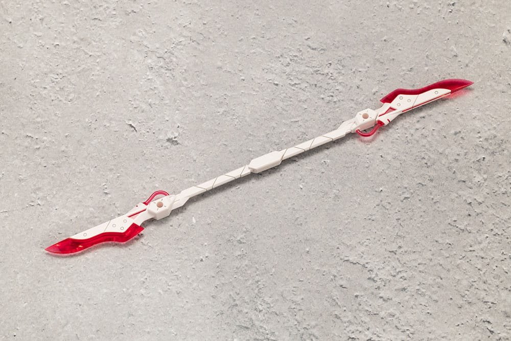 Includes two scalpel-like swords that are able to be connected to create a double-bladed sword.