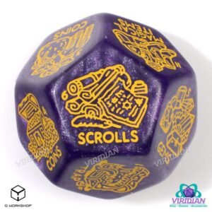 A Big Reward – Jumbo-sized D12 dice, engraved with twelve loot categories to inspire rewards, story twists, or treasure tables.