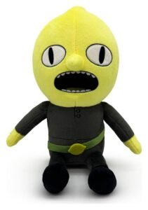 Prepare for the grace of royalty, the Earl of Lemongrab has decided to take over… I mean… assist Youtooz with their plush debut! Sitting at 9 inches tall with his mouth opening into a piercing shriek, a dark tongue is visible behind rounded teeth as his sharp nose pokes out from above with frenzied eyes on either side. Wearing a dark grey outfit with two buttons on the chest as a green belt with a lemon buckle wraps around his waist, long arms hang to either side as his black shoes kick forward. This plush is packed to the seams with 100% PP cotton and is made of the softest minky material with accents of felt, absolutely perfect for cuddling or being a bit of a menace with!