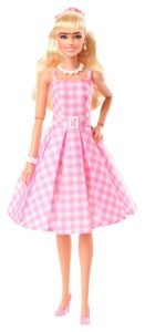 Greetings from Barbie Land! This Barbie® doll cuts a timeless silhouette in a sweet dress modeled after one of her character’s iconic looks in Barbie™ The Movie. With her pink gingham dress, daisy necklace and pastel pumps, she’s ready to have the best day ever in Barbie Land! In the likeness of Margot Robbie as Barbie, this doll makes a great gift for fans and collectors alike. Doll cannot stand alone. Colors and decorations may vary.