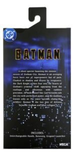 Diretamente do icônico filme de Tim Burton de 1989, que definiu o Batman para uma geração moderna, a NECA apresenta esta figura de ação do Batman com roupas, retratando a semelhança de Michael Keaton.