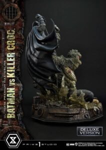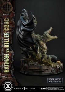 A versão Deluxe desta peça de colecionador oferece ainda mais versatilidade. Tanto o Batman quanto o Crocodilo vêm com cabeças intercambiáveis, permitindo que os colecionadores escolham entre uma variedade de expressões que adicionam profundidade à exibição. Os detalhes esculpidos capturam as diversas representações ilustradas do Crocodilo. Esta versão é indispensável para quem aprecia as nuances deste confronto épico.