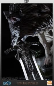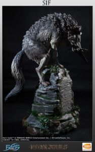 Alone, in a serene graveyard across the river from the Darkroot Garden, a giant wolf guards the grave of Artorias the Abyswalker to prevent others from meeting the same fate as his former master. Clutching the Greatsword of Artorias in his mouth, Sif is ready to battle. First 4 Figures is proud to present The Great Grey Wolf, Sif. A giant noble wolf from FromSoftware’s stunning action role-playing game: ‘Dark Souls’. Dark Souls takes place in the fictional kingdom of Lordran. Players assume the role of a cursed undead character who begins a pilgrimage out of the Undead Asylum to discover the fate of the Undead. Sif stands at 25 inches tall from the top of his hair to the base, making for a simply stunning display centerpiece for any Dark Souls fan.