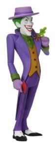 Based on his appearance in the classic comics! The Joker joins the Toony Classics line, a fun take on beloved characters from film, TV, and pop culture. He stands approximately 6″ tall, and includes removable hat, playing card, and squirt effect that can attach to the flower on his lapel. Blister card packaging with bonus cutout backdrop.