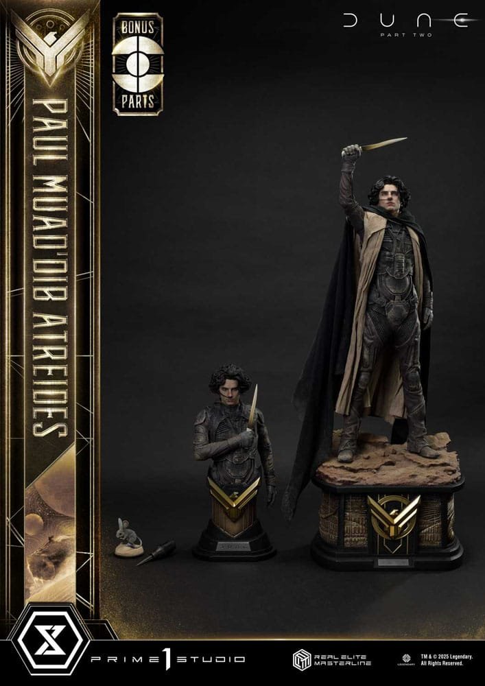 Esta estátua em escala 1/3 captura Paul enquanto ele enfrenta seu destino na Parte Dois. Sua pose, erguendo a crysknife, é inspirada na imagem principal, personificando seu espírito resoluto de vingança, de proteger seus entes queridos e de cumprir seu papel.
