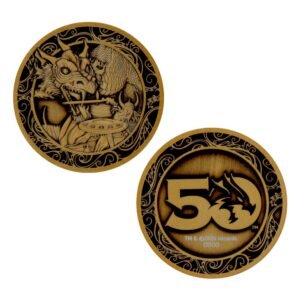 Celebrating the 50th anniversary of the most important RPG to ever have existed, this limited edition antique gold coin is heavily embossed with the design from the original basic rules set and is individually numbered as one of 5,000 worldwide.
