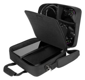 The USA Gear S13 travel case offers robust protection for your game console and accessories, perfect for travel or on-the-go use. – Padded, scratch-resistant interior – Durable nylon material with reinforced, weather-proof base – Heavy-duty metal hardware – Adjustable shoulder strap and accessory pockets – External Dimensions: 40,6 x 33 x 16,5 cm – Device Compartment Fit: 38,1 x 30,5 x 7,6 cm