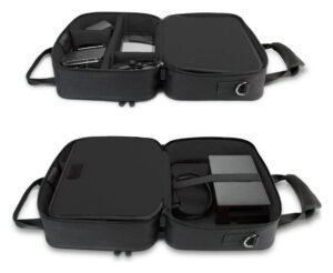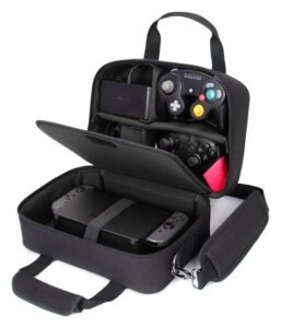 The USA Gear S14 travel case protects your Nintendo Switch and accessories, including the docking station and controllers. – Padded, scratch-resistant interior with adjustable compartments – Durable nylon material with reinforced, weather-proof base – Heavy-duty metal hardware – Adjustable shoulder strap – External Dimensions: 30 x 23 x 15 cm – Device Compartment Fit: 28 x 20 x 6 cm