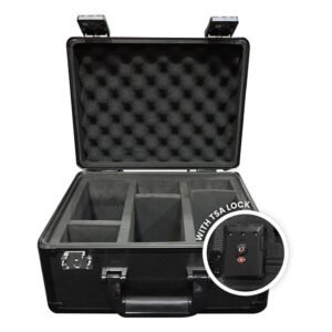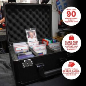 Keep your graded cards safe and organized with the Black Aluminum Storage Box. Built with a durable aluminum frame, reinforced steel corners, and a water-resistant ABS shell, it holds 90 PSA, BGS, or CGC slabs. Features TSA lock, hidden GPS compartment, ergonomic handle, and foam dividers for maximum security and portability. A must-have for serious collectors!