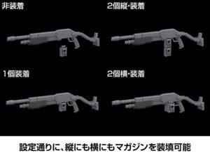 – A wide variety of weapon parts are included, such as the Type 10 Modified Monomolecular Blade and the Boxer II 76mm Shot Cannon.