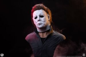 This 23.5″ tall bust will bring an eerie atmosphere to any horror collection, combining an expertly sculpted recreation of Myers’ iconic mask with high end finishes on the mixed media clothing and lifelike hair. Michael’s head is cocked to the side just slightly giving him an unsettling, curious appearance sure to unnerve even the steeliest horror hound.