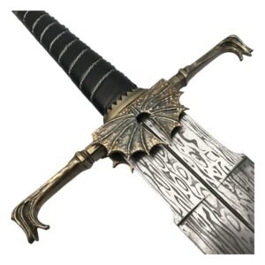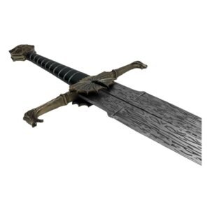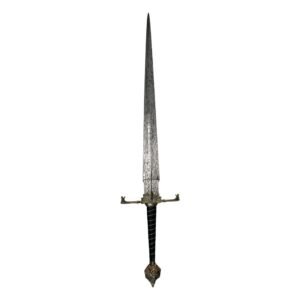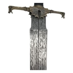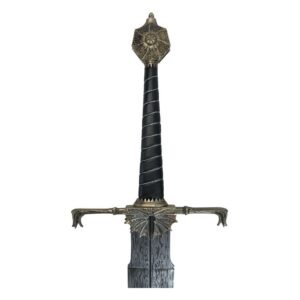 Wielded as a symbol of power by King Viserys I, Blackfyre is a bastard sword, so nick-named because of its hand-&-a-half proportions. Its wide blade is a ‘chopper’ designed for both offence and defense.