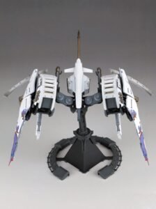 As this kit was designed to be geared towards advanced modelers, it includes more details and complexities in the sculpt that would otherwise be omitted in a typical kit, allowing for a faithful recreation. The distinctive homing beam attack and landing arm can be recreated through the replacement of parts. The patterns on the fuselage are recreated using mold shape and decals.