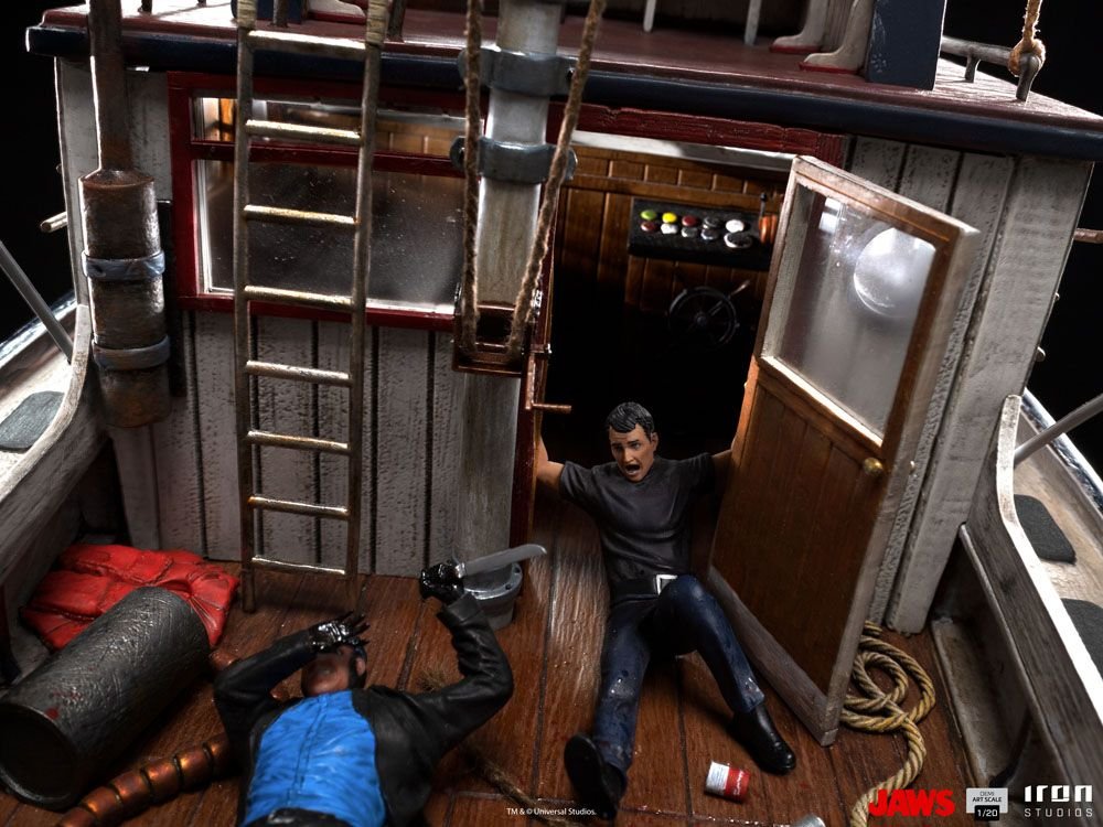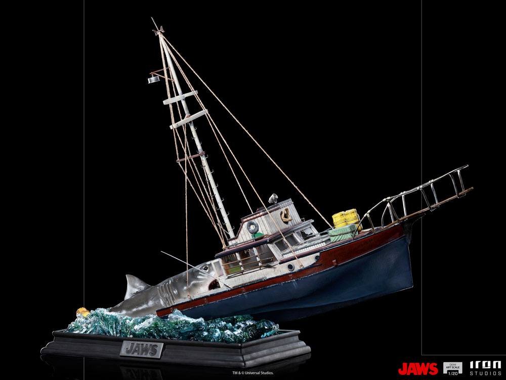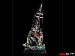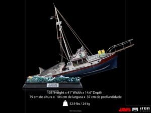 Off the coast of Amity Island, the famous shark fishing vessel called the Orca, named after the shark\’s only natural enemy faces its wreckage after a long hunt for the deadliest marine predator it has ever faced. Crewed by its captain, eccentric war veteran Sam Quint, alongside Amity Police Chief Martin Brody, the vessel\’s stern shatters into pieces in the teeth of the sea\’s most fearsome creature, the Great White Shark. With the bow of the boat suspended from the water by the weight and strength of the animal, Quint fights the creature, slipping into the voracious mouth of the monstrous fish, while Brody, in despair, holds on to the doorframes of the Orca\’s cabin, so he doesn\’t have the same terrible fate. Replicating the final scene of combat between the brave hunters and cinema\’s most famous carnivore, Iron Studios proudly presents its \”Jaws Attack Demi Art Scale 1/20\” statue, inspired by the classic and iconic film directed by Steven Spielberg.
