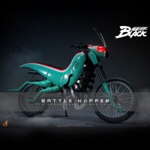 Sideshow and Hot Toys are thrilled to present the Battle Hopper Sixth Scale Collectible Vehicle, a faithful and finely detailed tribute to this iconic Rider Machine. Measuring approximately 36?cm long, 14?cm wide, and 21?cm tall, the model showcases authentic mechanical features, from the engine, frame, and exhaust to side stands. Battle Hopper is finely painted in shiny green, red, and white color schemes. The grasshopper-inspired exterior includes long antennae, grasshopper legs, and headlights with LED-lit red light that imitates the eyes. Features such as rear spring suspension and rotatable wheels with dirt-weathered tires show expert craftsmanship.