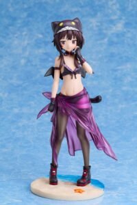 The statue from “KonoSuba: An Explosion on This Wonderful World!” is about 22 cm tall and made of PVC. It comes with a base in a Japanese window box.