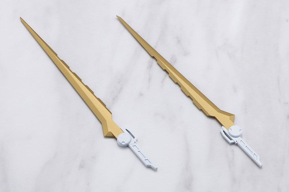 – The kit consists of two main components: A backpack unit and wing slash units. The backpack unit is fitted with articulated left and right arms that allow for flexible positioning of the wing slash units.