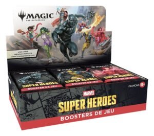 The Marvel Universe has arrived in full force! An all-star roster of heavy hitters jumps from the comics to the battlefield, and the fate of the world hangs in the balance. Soar, strike, and smash your way to victory in Magic: The Gathering Marvel Super Heroes! Play Boosters are perfect for playing with friends and opening packs just for fun. Each pack contains 14 cards, including 1–4 cards of rarity Rare or higher and 3–5 Uncommon, 6–9 Common, and 1 Land cards. 1 card of any rarity is Traditional Foil. Foil Borderless Mythic in <1% of boosters. Traditional Foil Land replaces a Land in 20% of boosters.