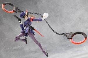The best feature of this series is the approximately 50 points of articulation throughout the body. The six pieces of the miniskirt armor can be moved individually, allowing the model to be posed in a wide variety of actions, from quiet poses like kneeling or sitting cross-legged to high kicks and poses with weapons.