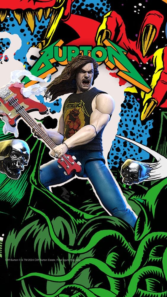 Known as “The Major Rager” bassist from the band Metallica, Cliff Burton is regarded as one of the most influential musicians in heavy metal music. The latest 7″ scale, highly articulated Cliff Burton ULTIMATES! Figure is inspired by the