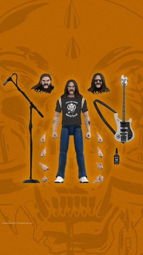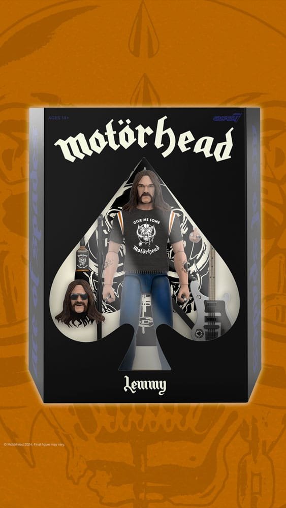 Lemmy’s signature mutton chops, gravelly voice, and unique way of playing the bass guitar helped solidify Motörhead as one of heavy metal’s pioneering acts! This latest 7″ scale, highly-articulated Motörhead ULTIMATES! Lemmy figure is inspired by the legendary rocker’s look on the band’s epic 1981 European Tour. Featuring intricate sculpt and premium paint detailing, this figure also comes with multiple interchangeable heads and hands, and an assortment of accessories including a black and white bass guitar with removable strap, whiskey bottle, and microphone stand. If you like to gamble, now is not your chanceorder your 1981 Tour Motörhead ULTIMATES! Lemmy today!