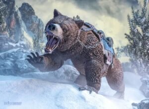 In the days before the House of the Noble Bear marched from the colds of Bjorngar towards inevitable war, Attlus the Conqueror returned to the home he once shared with his wife, Risha. Making his way to the tree under which he had buried her body, the tree whose desecration by orc raiders led to Attlus picking up his blades once again, the barbarian was greeted with an unexpected sight. A gigantic bear sat by the charred remains of the tree, its head bowed and eyes closed as if in silent prayer. Wary of alarming the bear, Attlus backed away quietly, but the bear opened his eyes and looked his way. Attlus felt his breath leave his body. He saw his wife’s eyes reflected in the gaze of that beast, and the barbarian king knew that somehow, his wife had sent this creature to his side in his most desperate hour. Together, man and beast left Risha’s Grove, as Attlus the Conqueror rode Bödvar towards the greatest battle the Realm of Mythoss had ever seen.