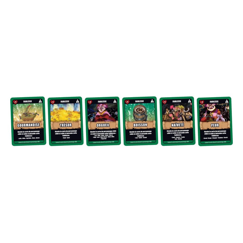 Dive into the world of One Piece with this captivating card game! Join the Ninja-Pirate-Mink-Samurai alliance and face off against the formidable coalition of Kaido and Big Mom by being the first to unmask the other players before they do. Three game modes await you: “Spirit, are you there?” to guess identities, “Raid on Onigashima” to fight in teams, and “Battle Royale” to eliminate all opponents. With 30 character cards, embody your favorite heroes and prove that you are the best!