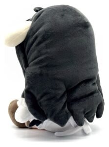 Albedo’s new task from Ainz has led her to Youtooz for her debut! Sitting at 9 inches tall with a thin, curved smile and half shut eyes covering bright yellow pupils, long black hair falls over her face and down her back as a pair of horns curl around each side of her head. Dressed in a pleated white dress that falls off her shoulders with a golden chestpiece attached to her choker, she wears white gloves and brown shoes as two dark wings extend from her back. This plush is packed to the seams with 100% PP cotton and is made of minky and tricot materials with accents of felt , absolutely perfect for cuddling or managing the floor guardians with!