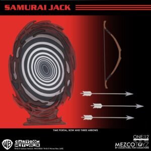 The stoic warrior is prepped to defeat the ultimate evil with his legendary katana and sheath which can be stored in his belt, a functioning bow & arrow, and a time portal FX allowing Jack to move throughout time.