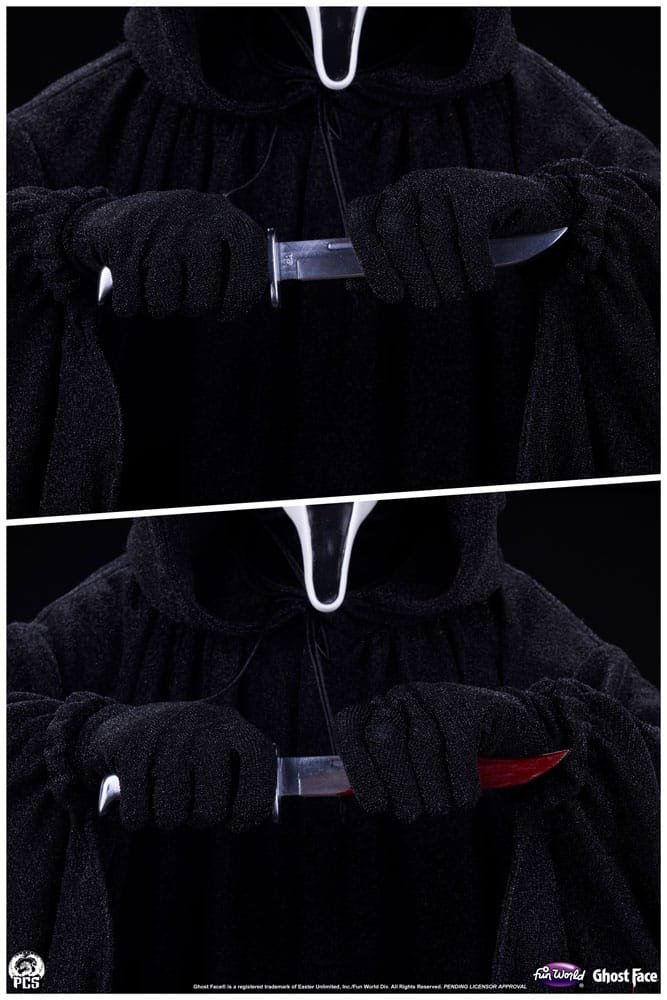 The Ghost Face 1:2 Scale Statue includes several options to allow you to craft your own killer display. The Collector’s Edition includes clean and bloody options for the knife as well as clean and bloody options for the signature Ghost Face mask.