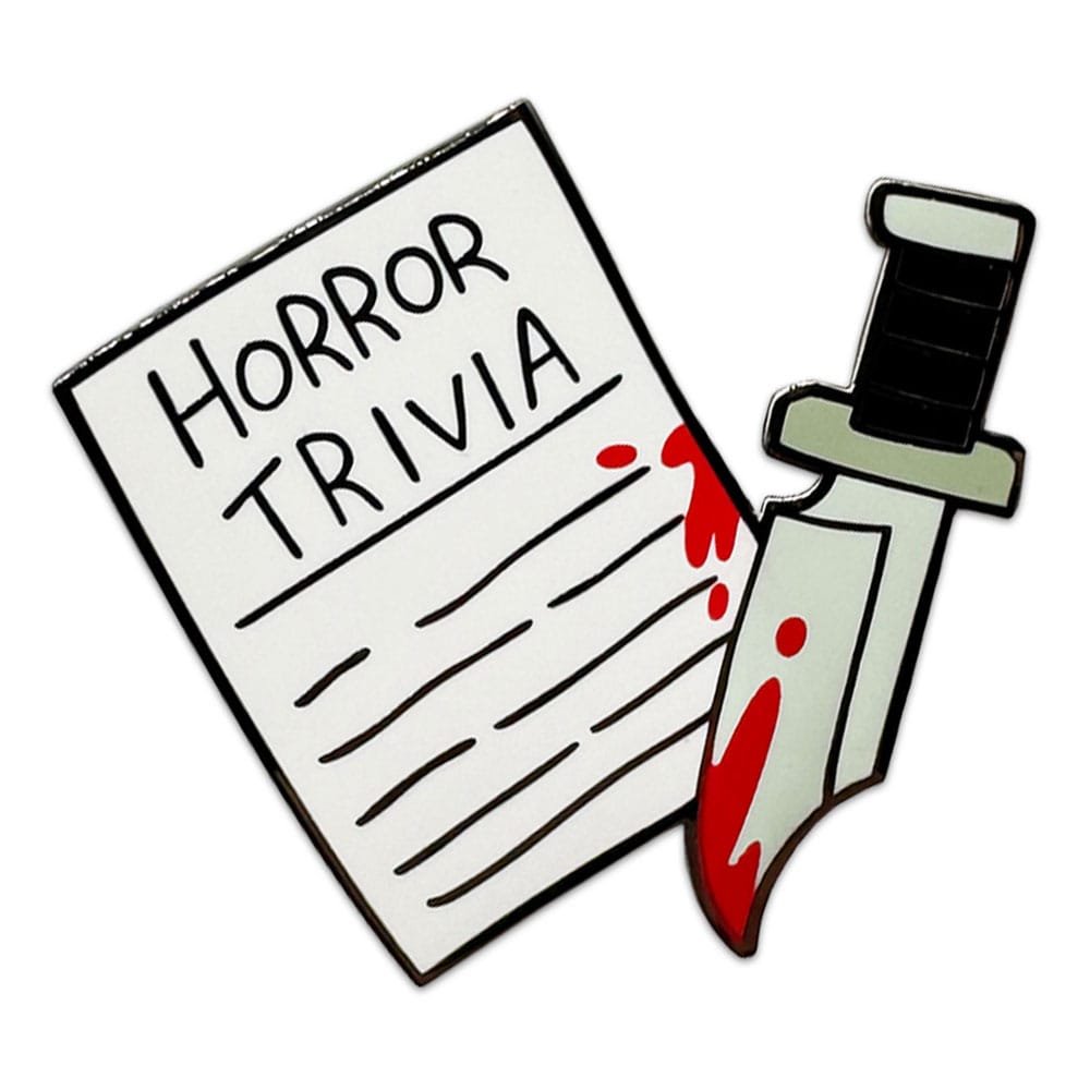 Time to get a little spooky with our brand-new pin set! 5 scary unique enamel pins that each measure at 2 inches with a shiny, high quality finish, the collection contains a bloody horror trivia sheet, a spooky box of popcorn, Ghost Face with blood smeared on their mask, them looking down in preparation and finally wiping blood off a used knife. Perfect as decoration on a cork board or showing off on your tote bag, backpack, fanny pack, jacket or wherever your heart desires, these pins are sure to turn heads and catch the eyes of anyone you pass, letting them know who’s ready to call!