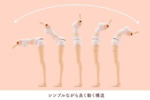The neck joints have the forward and back sliding feature from Koyomi Takanashi?Swim Style?, allowing for dynamic vertical movement such as tucking in the chin and looking up. It can be used to prevent hair parts from getting in the way of articulation.