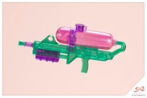The included pump-action rifle, WEAPON UNIT21 WATER ARMS, comes specially colored in a vivid, clear color, perfect for the beach!