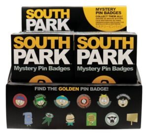 Collect all our South Park mystery pins! Each CDU comes with 12 pins included. As well as the 11 enamel pins, there is also a chance to find the heavily embossed and gold coloured South Park logo pin!