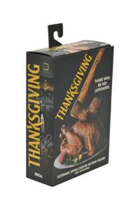 From Eli Roth’s 2023 slasher hit, Thanksgiving, comes a second Ultimate action figure of the holiday killer! Donning his turkey apron, John Carver is ready to cook up an unforgettable feast with a cornucopia of new accessories. This articulated, 7-inch scale figure includes a soft goods apron, interchangeable mask with microphone, bloody mask, melted mask, axe, electric cutter, cooking timer, cell phone on stand, pitchfork, kitchen knife, carving fork, and corkscrew. Plus, multiple interchangeable hands to hold his bounty of unconventional weapons! Comes in collector-friendly window box packaging with opening front flap, making it perfect for your NECA display. This figure is something to be thankful for!