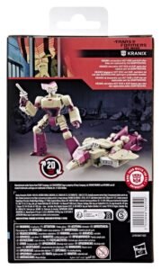 Experience the epic action of The Transformers: The Movie with the Deluxe Class Studio Series Kranix figure. The 5.5-inch (14 cm) figure converts from robot action figure to spaceship mode in 20 steps. With movie-inspired details, intricate poseability, and an attachable blaster accessory, this Transformers Kranix action figure makes an awesome addition to any collection. Look for more Studio Series Transformers figures (sold separately, subject to availability) featuring favorite characters like Optimus Prime, Thundercracker, Wheeljack, and more to create a lineup that is – More Than Meets the Eye.