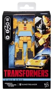 Experience the epic action of The Transformers: The Movie with the Studio Series Sunstreaker toy! The 4.5-inch (11 cm) figure converts from robot action figure to car mode in 15 steps. With movie-inspired details, good poseability, and a blaster accessory that attaches in both modes, this Transformers Sunstreaker action figure makes an awesome addition to any collection. Look for more Transformers collectible toys (sold separately, subject to availability) featuring favorite characters like Optimus Prime, Bumblebee, Megatron, and more to create a lineup that is — More Than Meets the Eye.