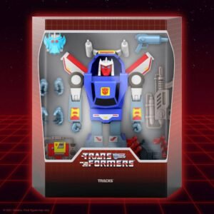 Tracks is totally awesome! Just ask him, he’ll tell you! Considering that his non-robot transformations are a sports car AND a jet plane, it’s kinda hard to argue with him. The Transformers ULTIMATES! figure of Tracks features G1 accurate paint deco and interchangeable heads and hands, measuring in at 7.5″ in height when fully equipped with his wings and missiles. With an arsenal of weapons and other accessories inspired by both the cartoon and the vintage toy, this Autobot diva is equipped to the nines! Love to hate him or hate to love him, either way, he’s a key member of the Autobots- and seeing that he once risked his life defending San Francisco, he’s near and dear to Super7’s heart.